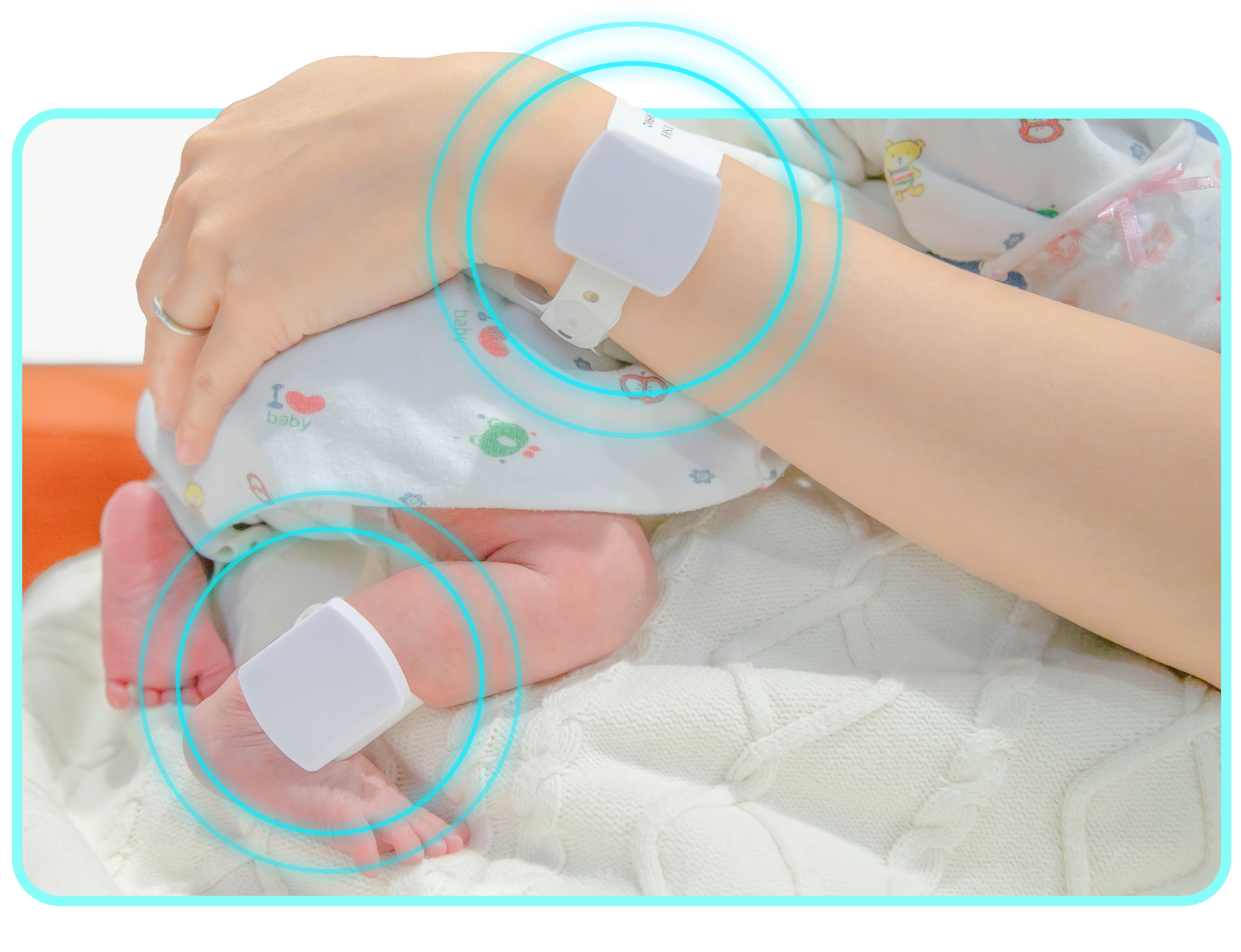 母親與嬰兒於分娩後即配戴相對應的智能手帶系統全程監控。確保嬰兒在轉移、親子同室、檢查或母乳餵哺,以RFID科技準確核對嬰兒與媽媽的身份。