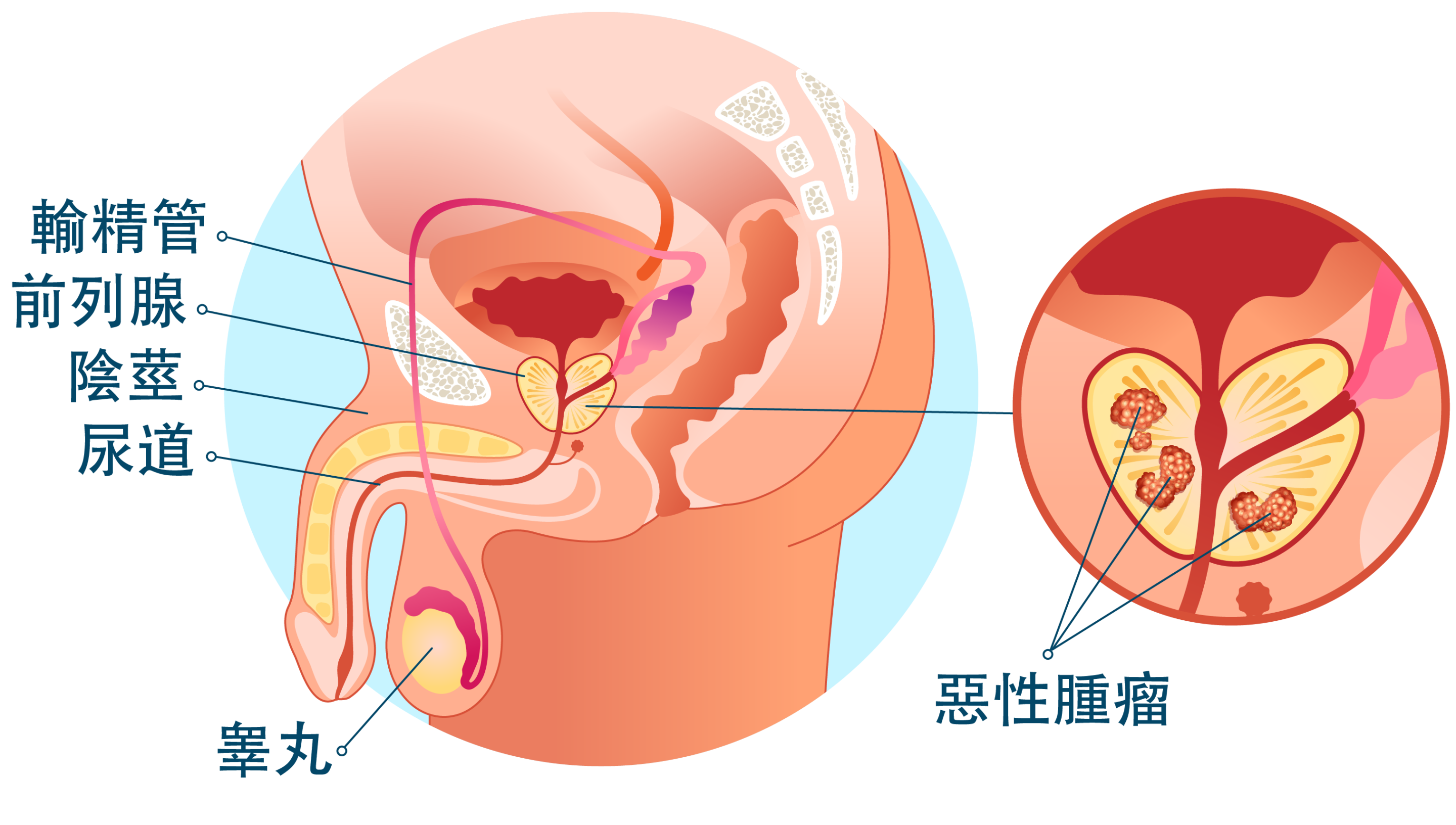 • 荷爾蒙治療: 抑制睾酮生成或阻斷其與癌細胞結合的激素療法,用於晚期癌症或輔助治療。