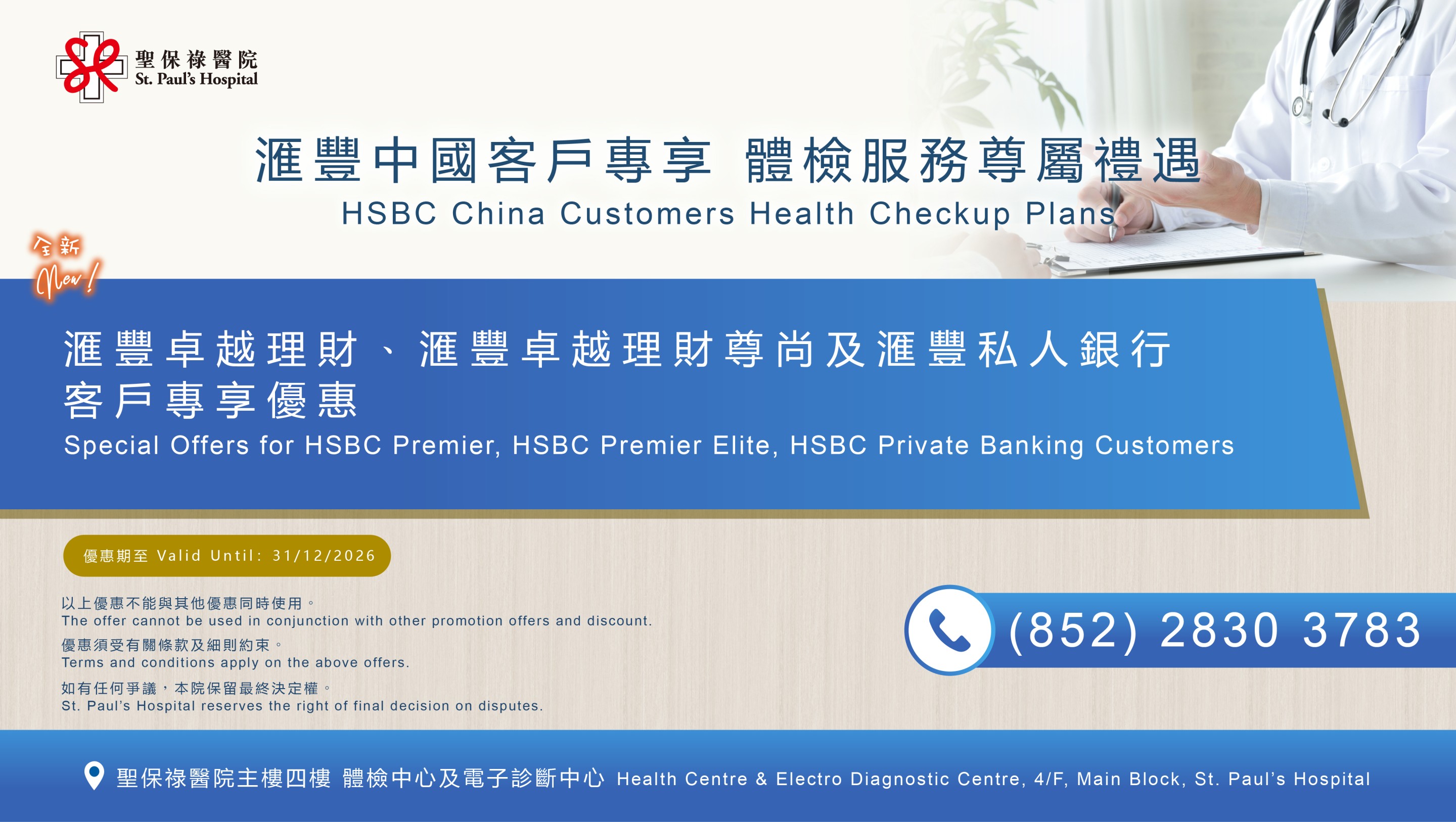 滙豐中國客戶專享 體檢服務尊屬禮遇